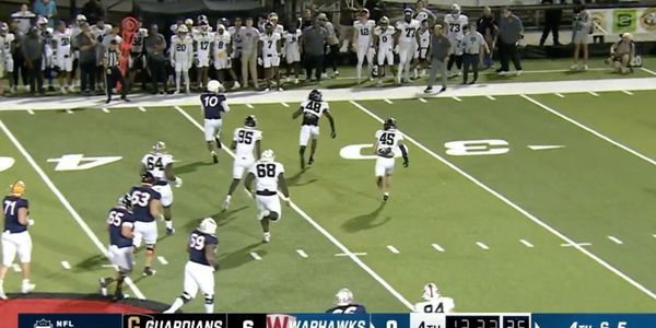 Warhawk Quarterback, Dequan Finn, #10, runs for a 1st down during a critical fourth down conversion in the final quarter of the American Bowl